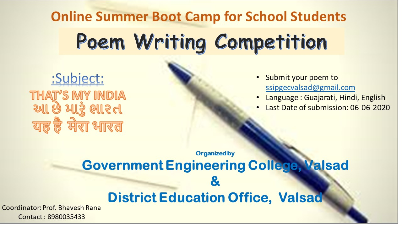| GEC Valsad SSIP Cell, ONline Summer bootcamp : 2nd To 8th June 2020 Detailed Poster | Click here for Registration |